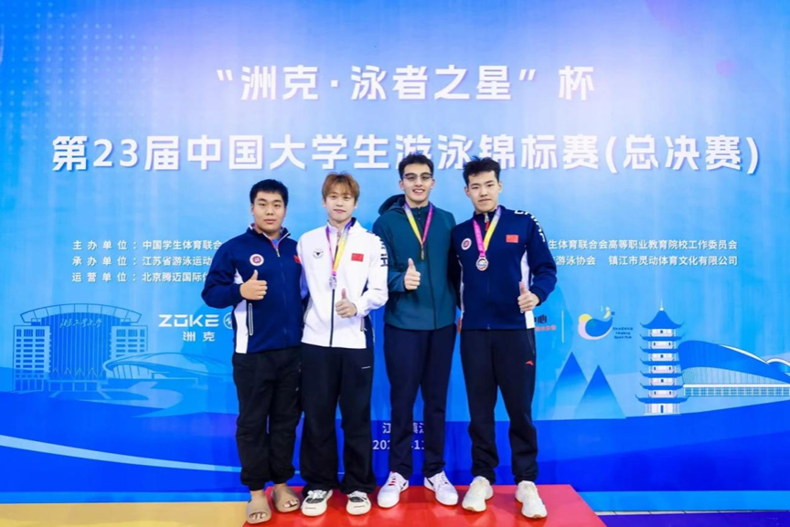 同济大学游泳高水平运动队在领队卢天凤老师,教练员张丰林老师带领下,同济游泳队16名队员奋力拼搏,互相鼓励,勇往直前,全力以赴。在比赛中充分发扬团结一心,顽强拼搏的同济体育人精神。经过4天8场比赛的激烈角逐,同济大学高水平游泳队最终斩获2个项目的金牌、1个项目的银牌、2个项目的铜牌、男子丙组团体总分第四、丙组团体总分第七的好成绩。