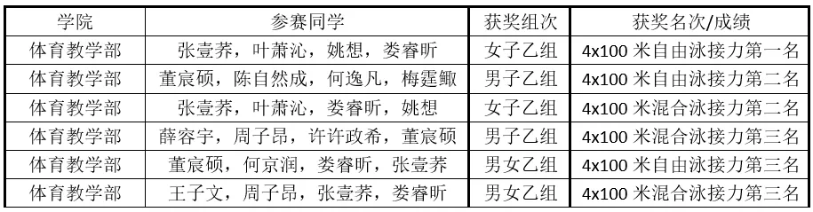 获奖项目:女子乙组50米蝶泳第一名
